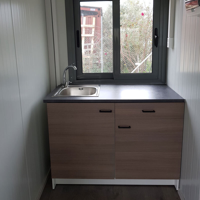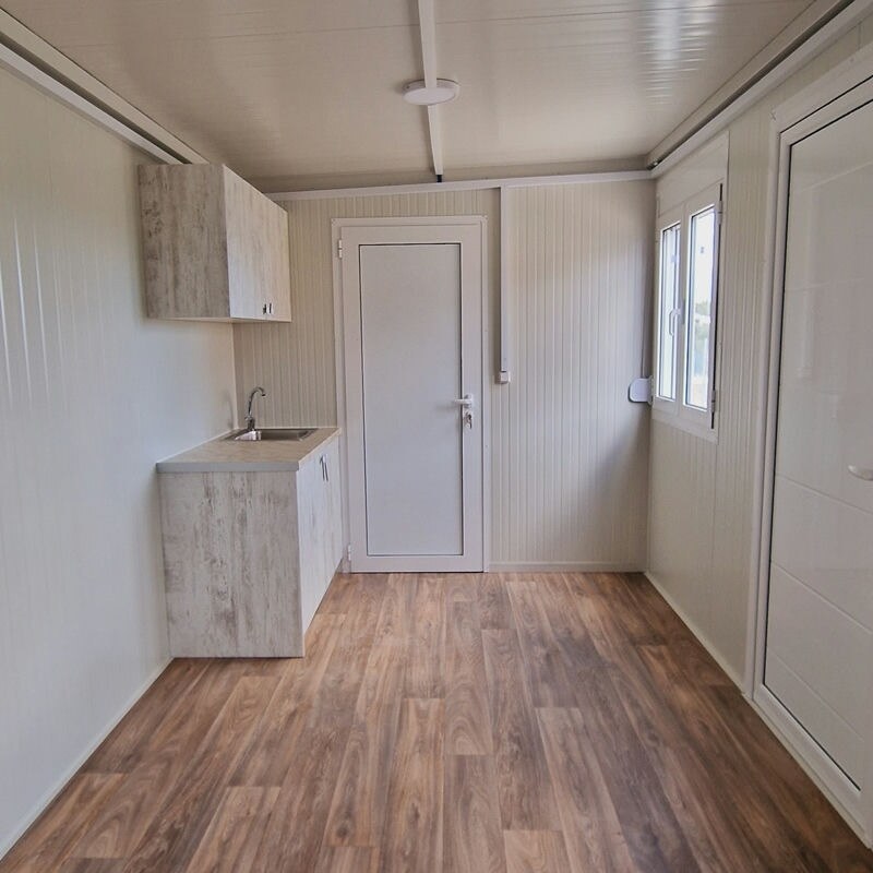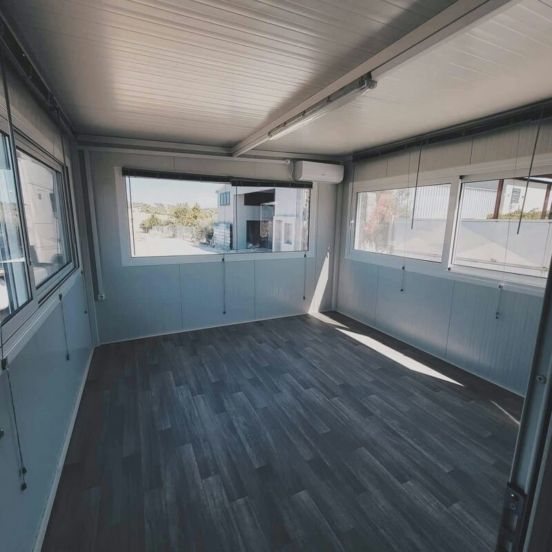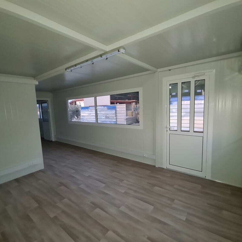 Περιλαμβάνει: 1 πόρτα αλουμινίου, 1 παράθυρο αλουμινίου, ηλεκτρική εγκατάσταση, επικάλυψη πατώματος με PVC όπως φαίνεται στην παραπάνω φωτογραφία.